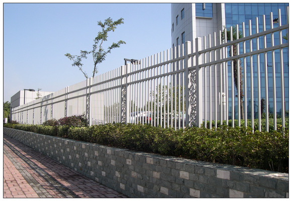 市政栅栏又名方管组装栅栏主立柱材料为60*60*1.5热镀锌方管,表面高附着力静电喷涂处理。