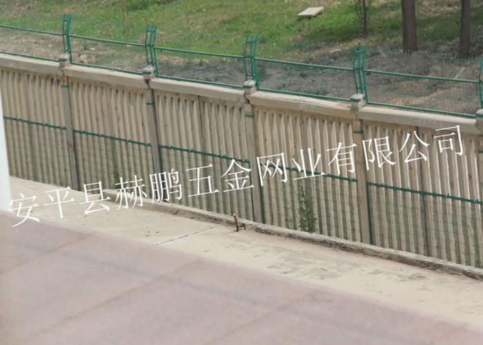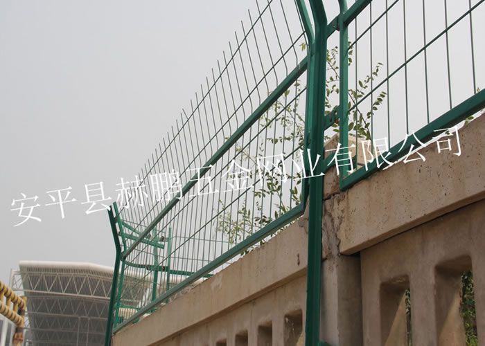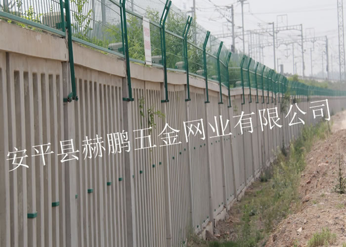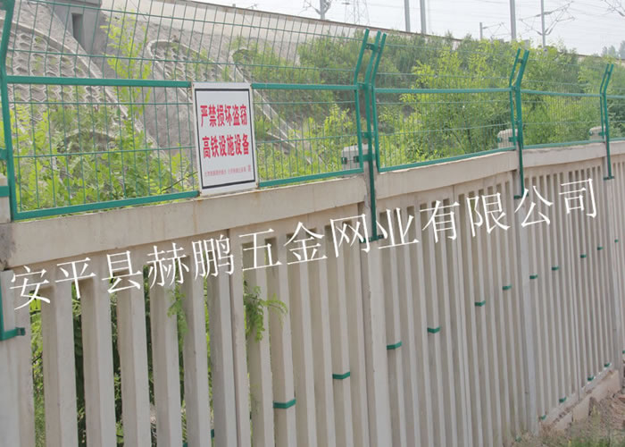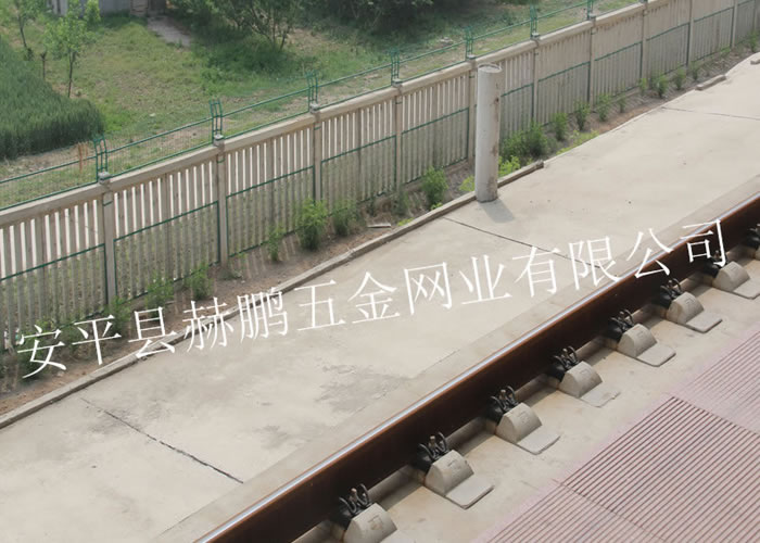 铁路加高防护栅栏的规格:网片采用Q235矩管边框,规格30mm*50mm,矩管厚度2.0mm,内部网丝采用HPB高线钢丝冷拔加工,孔径75mm*150mm,上部向外折角30º。 采用焊接框架网片工艺,美观牢固穿透力强。表面处理:整体镀锌并进行热浸塑(或喷塑)处理,镀锌量270g/m2,浸塑厚度0.8mm~1.2mm,颜色选用墨绿色。涂层应均匀,颜色一致,表面光滑,无流柱,滴瘤、粉泡、漏铁等缺陷。 网片制造精度要求:长度误差≤2.5mm,高度误差≤3.0mm。 网片平整度要求:凸起或凹进值≤5.0mm。 冷拔钢丝镀锌前直径误差≤0.06mm。焊接网孔误差≤3.0mm。 焊接网片连接板时,连接板焊接位置应严格控制在设计位置,其位置误差≤1.5mm。 加高防护栅栏使用年限可达到20-25年之久。防护栅栏是铁路不可缺少的防护设施。 铁路加高防护栅栏所有螺栓均采用防盗设计,由螺杆、螺帽、防盗垫圈组成,安装及拆卸需有专门工具,根据不同连接点的厚度,选用图集中不同尺寸的防盗螺栓,螺帽拧紧固定后螺栓头部采用焊机现场点焊固定,防止螺帽松动。 铁路加高防护栅栏的作用:铁路两侧围挡防护设施,防止人、动物、车辆穿越火车道造成不必要的损失。