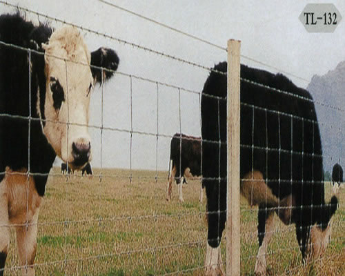 牛栏网又叫草原网,是一种在美洲欧洲广泛使用的保护生态平衡,防止山体滑坡,畜牧业围栏,尤其是在多雨山区在网子外面缝制一层防晒120克尼龙编织布阻挡泥砂流出所以近年发展迅速。 全自动机械制作特点:节约了大量人工,减轻工人劳动强度,在缠绕时加2T-3T机械压力使网面平整、结构坚固精密,网眼均匀、整体性强。尤其是采用了先进的压波工艺在每个网格之间压一个深12MM宽40MM弯,此弯俗称“波”更加使得网面平整,在冬夏气候变化大地区缓解了热胀冷缩并防止有猛兽撞击时网面自动回位增加网面的缓冲力。 牛栏网取材一般采用热镀锌丝,上锌量一般为每平方米60克-100克,潮湿地区要求较高,采用230克左右的丝,最近非洲地区也采用冷镀锌丝制作。 横向丝,抗拉力80KG--90KG以增加网的抗冲击力。 竖向丝,抗拉力40KG-50KG的低炭钢丝以便缠绕在横丝上。(缠绕时加2T-3T机械压力防止竖向丝滑动) 牛栏网网面要求平整度为:每50米长上下起伏点不超过1个(10平方厘米),上下起伏高低不超过10MM。网格左右误差不超过3MM,每卷牛栏网横丝不许有接头。网格破损率0