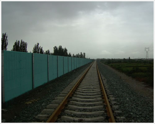 铁路声屏障声屏障:根据声屏障应用环境,声屏障分为交通隔音屏障、设备噪音衰减隔音屏障、工业厂界隔音屏障。室外的声屏障一般采用砖或混凝土结构,室内的声屏障引用钢板、木板、PMMA/POLYCARBONATE SHEET塑料扳、石膏板和泡沫铝等结构。2.5米宽PC板以由本厂研发成功。大大改善透光效果,增强耐撞击性!!耐弱酸和中性油。有效使用期达20年之久。 声屏障主要由钢结构立柱和吸隔声屏板两部分组成,立柱是声屏障的主要受力构件,它通过螺栓或焊接固定在道路防撞墙或轨道边的预埋钢板上;吸隔声板是主要的隔声吸声构件,它通过高强弹簧卡子将其固定在H型立柱槽内,形成声屏障。声屏障的设计已较为充分地考虑了高架高速道路、城市轻轨、地铁的风载、交通车辆的撞击安全和全天候的露天防腐问题。它外形美观大方,制作精致,运输、安装方便,造价低,使用寿命长,特别适用于高架高速道路和城市轻轨、地铁的防噪声使用,是现代化城市最理想的隔声降噪设施。 铁路声屏障,高度在1m一5m间,覆盖有效区域平均降噪达10~15dB(A)(125Hz~40000Hz,1/3倍频程),最高达20dB(A)。一般来讲,声屏障越高,或离声屏障越远,降噪效果就越好。